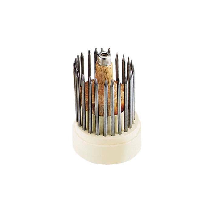 • Forms beads on prongs to securely and attractively hold stones in mountings also tightens stones• Set of 23 contains one each of:#0 (0.25mm)#1 (0.30mm)#2 (0.35mm)#3 (0.40mm)#4 (0.45mm)#5 (0.50mm)#6 (0.55mm)#7 (0.60mm)#8 (0.65mm)#9 (0.70mm)#10 (0.75mm)#11 (0.80mm)#12 (0.85mm)#13 (0.90mm)#14 (0.95mm)#15 (1.00mm)#16 (1.05mm)#17 (1.10mm)#18 (1.15mm)#19 (1.20mm)#20 (1.25mm)#21 (1.30mm)#22 (1.35mm)• A plastic stand and a handle• Hardened and polished steel As a brand married to innovation and quality, Technique™ products deliver effective results in less time.