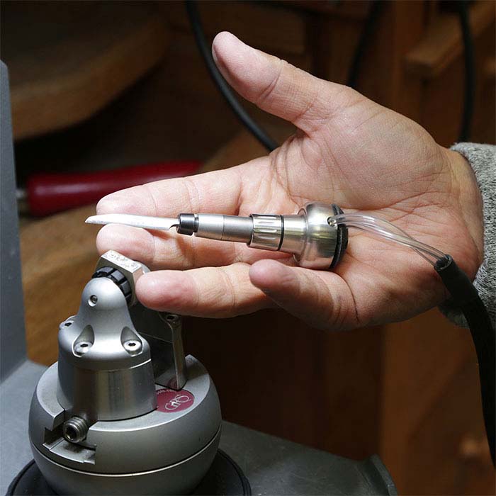 Dieses 921 Monarch™ AT-Handstück von GRS® bietet eine präzise Luftstromregelung in Ihrer Handfläche. Es ermöglicht Ihnen einen schnellen Werkzeugwechsel und ist ideal für feine Gravuren wie Bulino und Banknoten. Das Handstück lässt sich problemlos am Graver Mach™ AT oder den meisten GRS-Systemen befestigen, wenn es mit dem Airtact™-Steuerungssystem (separat erhältlich) verwendet wird. Das Handstück hat einen Körper aus wärmebehandeltem Edelstahl, einen Aluminiumgriff und einen verstellbaren seitlichen Schlauchanschluss; es wiegt 500 g.