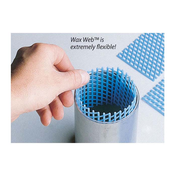Wax Web™ verbessert die Gussqualität erheblich, indem es Gase reduziert, die in der Gussform eingeschlossen sind und Gussfehler verursachen können. Verwenden Sie Wax Web bei Zentrifugal- oder Vakuumgussverfahren. Legen Sie das Netzblatt zu zwei Dritteln in eine 6"H x 4" Durchmesser Gussform ein.