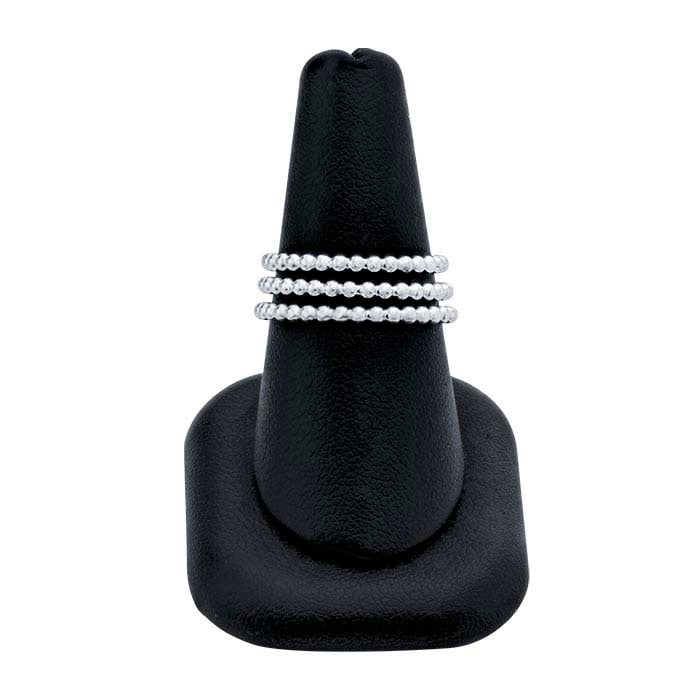 This sterling silver ring has a beaded wire pattern that gives it a simple and dainty look. If desired, oxidize the ring to highlight the pattern details. Offer it alone or along with a wide selection of stackable rings that customers can choose from to create an individual, changeable look.