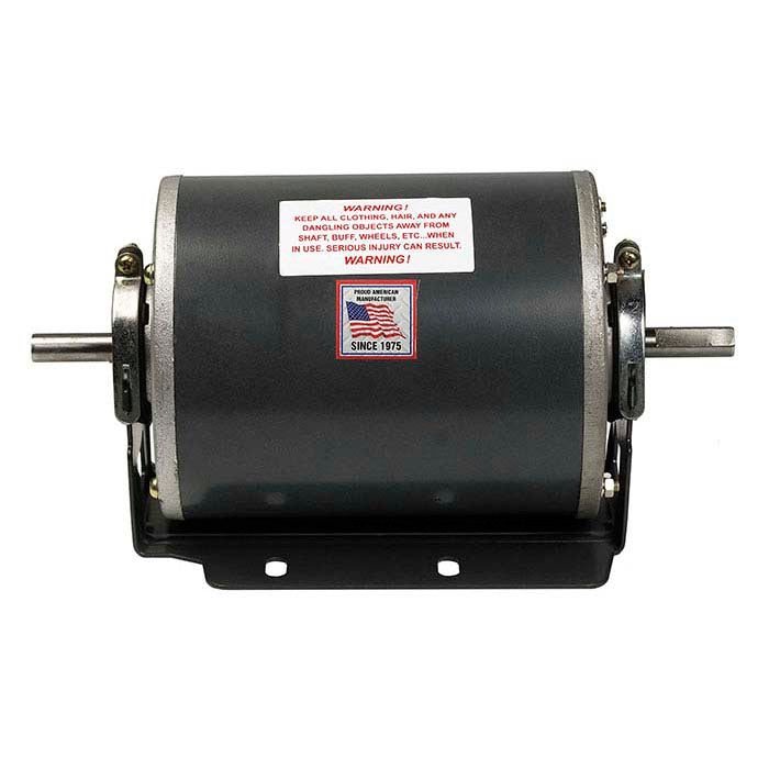 Choose this motor with an unsealed case for economy polishing options. It has a start capacitor and bearings. Specially designed 1/2" tapered spindles with parallel interior machining are made to fit onto the straight shafts of this motor.