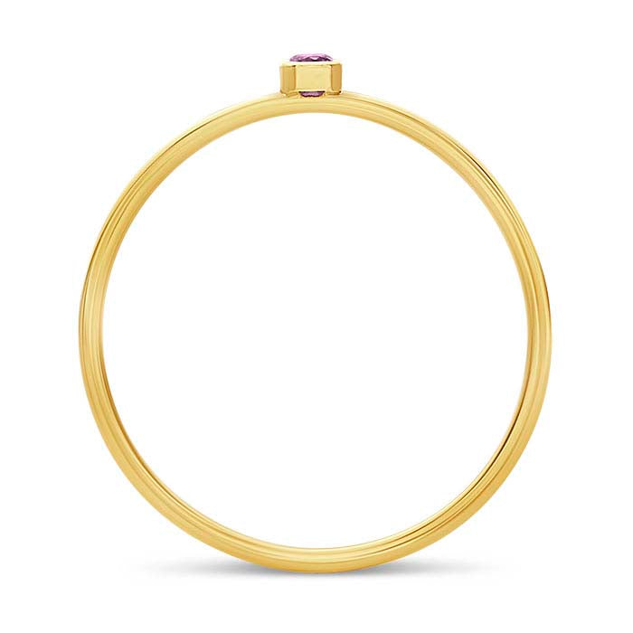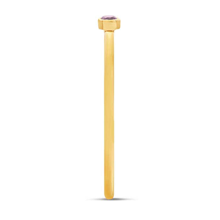 This 14/20 yellow gold-filled ring features one 2mm round AAA-grade purple CZ in a bezel setting. It's attractive as a stand-alone accessory or stacked in combination with other rings. Offer customers a variety of stackable ring styles to mix and match, and encourage them to create their own changeable designs. This ring is plated with 14-karat yellow gold to ensure a uniform color.