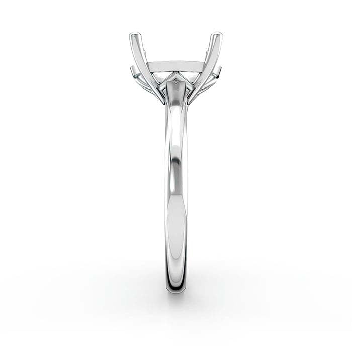 Αυτό το δαχτυλίδι στερέωσης από λευκό χρυσό 18 καρατίων προσφέρει κλασικό σχέδιο σολιτέρ και κρατάει ένα οβάλ πολύγωνο πολύτιμο λίθο 10 x 8mm σε στερέωση με 4 ακίδες. Κόψτε μια θέση στις ακίδες για να φιλοξενήσετε τον πολύτιμο λίθο σας, στη συνέχεια γυαλίστε τις ακίδες πάνω από τον λίθο για να τον ασφαλίσετε στη θέση του.