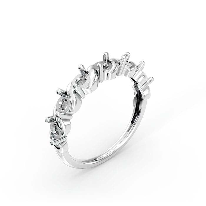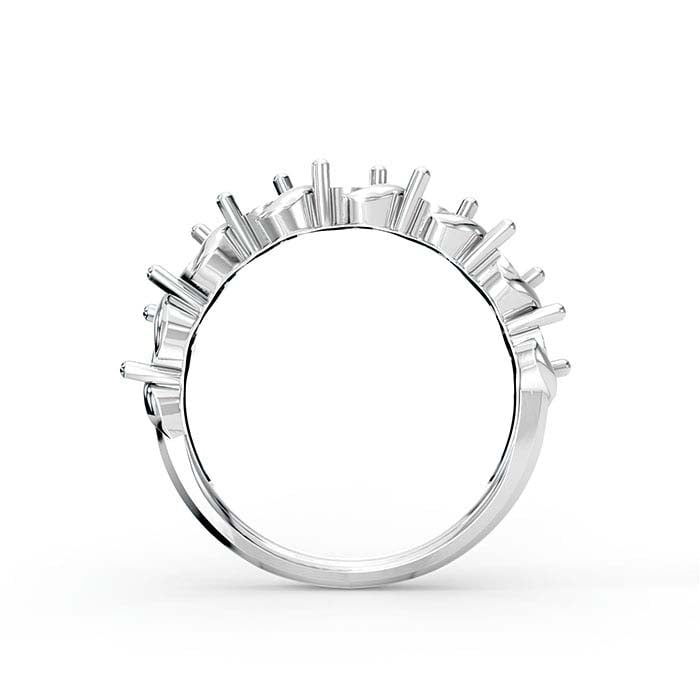 Αυτή η βάση δαχτυλιδιού από λευκό χρυσό 18 καρατίων διαθέτει επτά στηρίγματα 2-ακίδων που κρατούν έναν στρογγυλό πολύεδρο λίθο 3mm (περίπου 0.1 ct.). Κόψτε μια θέση στις ακίδες για να φιλοξενήσετε τους λίθους σας και στη συνέχεια γυαλίστε τις ακίδες πάνω από τους λίθους για να τους ασφαλίσετε στη θέση τους.