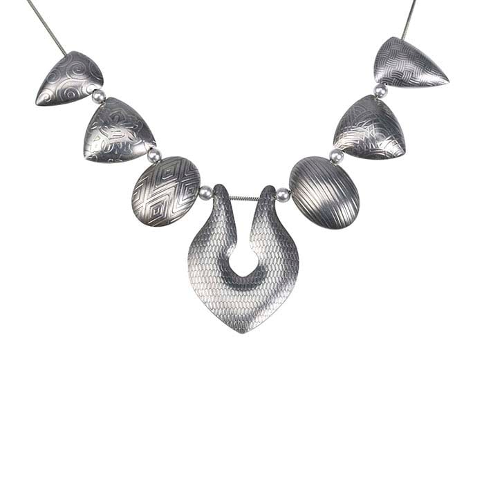 Form a variety of component shapes for your designs—consistently and accurately—with steel silhouette die plates. Use with a urethane container to focus all the force into the die plate for accurate volume shapes. Use a 60d urethane for more volume form and less detail; use a 95d urethane for more detail and less volume form. A kit including a urethane container with a stainless steel thumbscrew, a steel pusher, combination pattern die plates #1 and #3 and three urethanes (60, 80, 95d) are also available.Silhouette dimensions (L-R):• 1.256"L x 0.881"W (31.9 x 22.4mm)• 1.163"L x 0.648"W (29.5 x 16.5mm)• 1.304"L x 0.67"W (33.1 x 17mm)• 1.304"L x 0.809"W (33.1 x 20.6mm)• 1.195"L x 0.842"W (30.3 x 21.4mm)