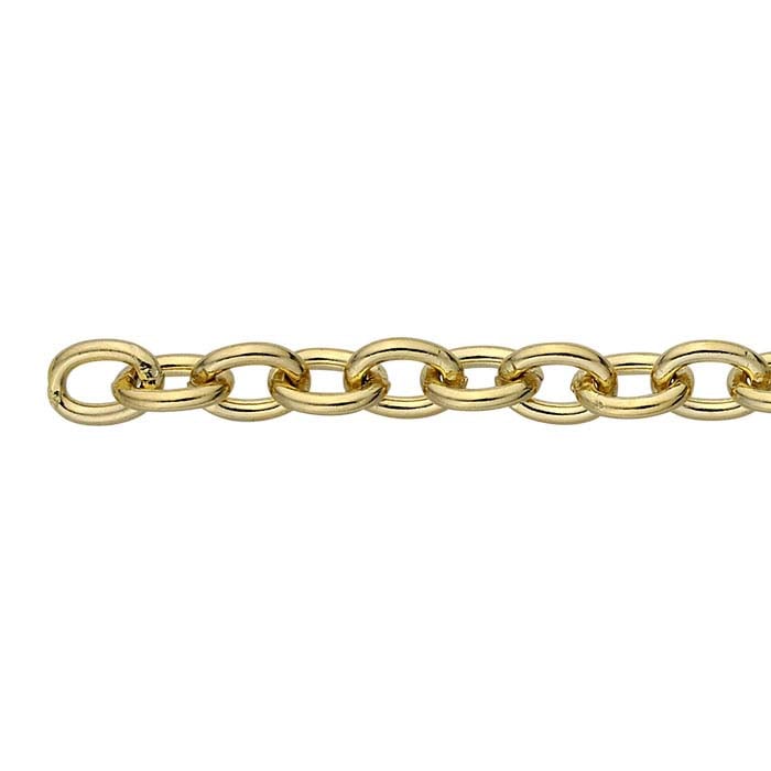 This yellow gold-plated brass cable chain ihas oval links and is great for showcasing a variety of customized charms, pendants and drops.The most common chain style, cable chains are formed by simply connecting single links perpendicularly end to end. Links may be round, oval or other shapes.The spool contains 10 feet of chain, so that you can always cut exactly the length you need.