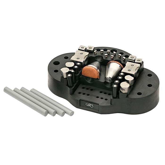 This 520 attachment set works most GRS® ball vises and provides a variety of tools and components that securely hold virtually any piece while you work. All components come in an easily accessible organizer tray made of high-impact plastic molded to accommodate each component. Set includes: