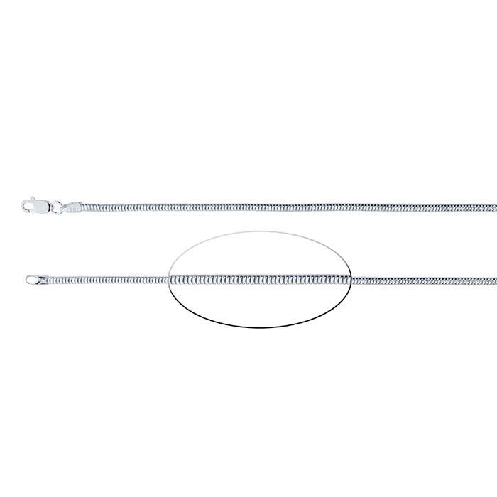 Classic style and sinuous flexibility make this sterling silver round unseamed snake chain a versatile complement for any design requiring a substantial foundation. This chain is plated with fine silver to ensure a bright white color and to help protect against tarnish.