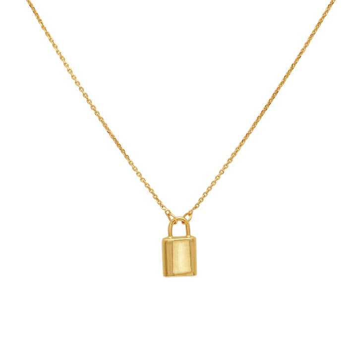 Tämä 14 karaatin keltakultainen kaulakoru on valmistettu kaapeliketjusta ja siinä on lukon koristelukko-riipus. Tarjoa kaulakoru sellaisenaan tai lisää henkilökohtainen kosketus leimaamalla tai kaivertamalla alkukirjain lukkoon. Yleisin ketjutyyli, kaapeliketjut muodostetaan yksinkertaisesti yhdistämällä yksittäiset lenkit kohtisuoraan päästä päähän. Lenkit voivat olla pyöreitä, soikeita tai muita muotoja.