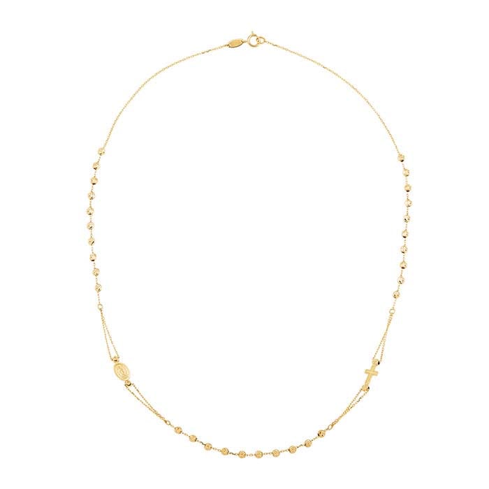 14K Keltakultainen Ruusukeripusketju Ristillä ja Marian Medallionilla