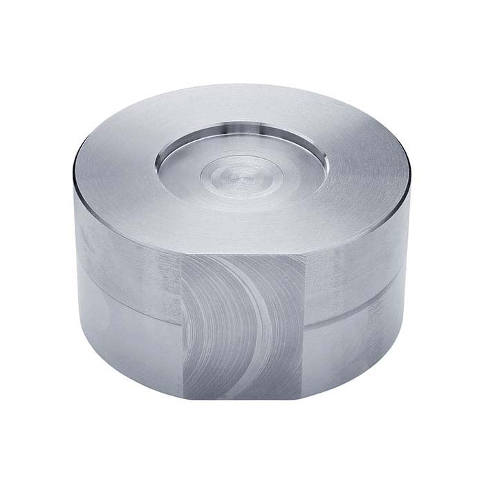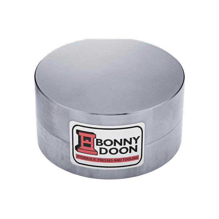 This seven-pound Monster bench block from Bonny Doon is designed for use with the mini coining die shot plates and for hand stamping precious metals. It makes your work easier and reduces the time needed to create a good impression with the mini coining dies by up to 50% when compared to working on a benchtop. One side features a 2” diameter recess that securely holds the dies while the other is precision ground, flat surface for use as a hand stamping block with a square edge for creating crisp bends in metal. It is made from hardened tool steel (30 HRC) and includes a felt pad.