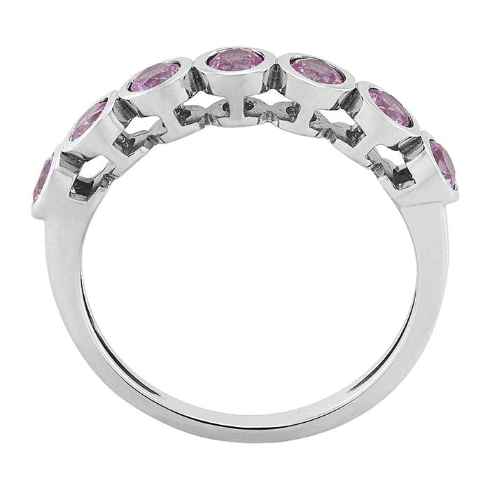 10K White Gold Lab-Grown Pink Sapphire-Set Seven Stone Ring