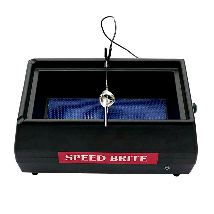 Easily and quickly remove tarnish, dirt and grime with this SpeedBrite 309SB turbo ionic cleaner. The ionic cleaning action delivers professional results using polishing agents and gentle soap cleansers that are safe for soft, porous stones such as opals and pearls. Ionic cleaning uses no abrasives, cavitation or heat. The electric current generated works with electrolytes in the Gem Sparkle™ ionic cleaning solution (included) to create bubbles that lift away dirt, tarnish and oxidation from gold and silver without removing any metal. Its compact design is ideal for showroom, travel and trade shows—and it makes a great offering as an add-on sale item for your customers. Made in the USA.