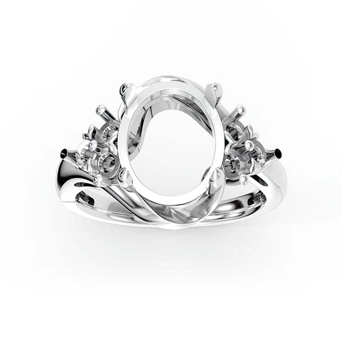טבעת הרכבה לאבן אליפטית ועגולה מזהב לבן 18K