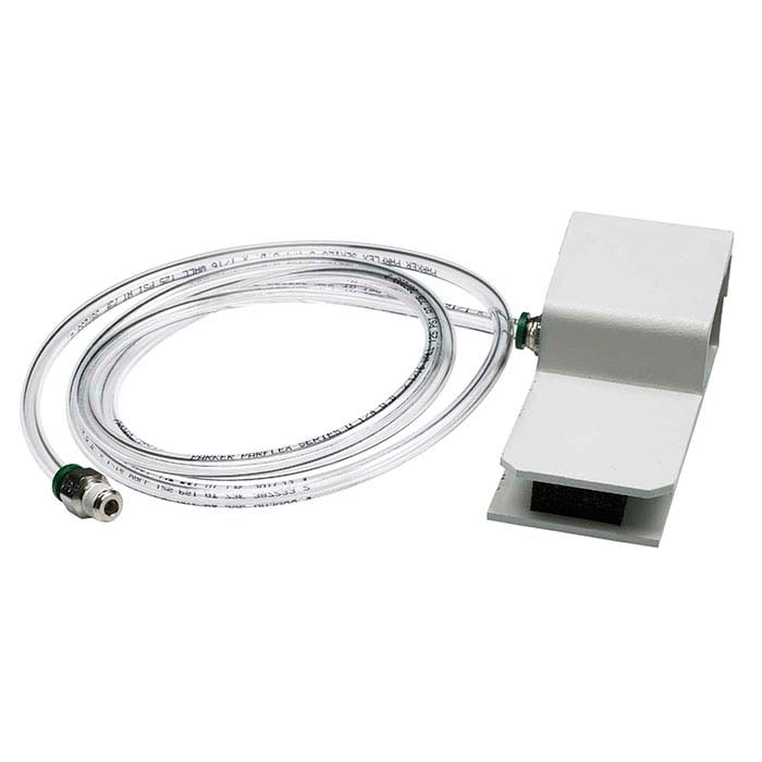 Use this foot pedal with the benchtop pencil–style bead blaster. The foot pedal provides smooth, hands–free control of the blasting operation.