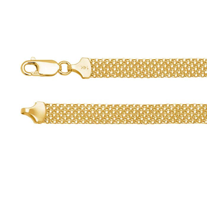 This classic 14-karat yellow gold bismark chain bracelet provides a clean and sophisticated look. An oval lobster clasp completes the bracelet. Bismark chain is made from interlocking metal links to create a woven appearance. These popular chains are known for their woven style, versatility and durability.