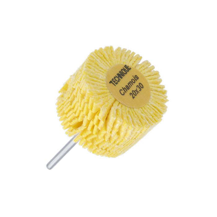 This high-quality miniature buff from Technique™ features evenly spaced chamois flaps positioned at intervals around the circumference of the wheel. It is ideal for polishing gemstones and use on all metals; the chamois contours to curved and flat surfaces on any jewelry style and allows you to efficiently achieve a final polish. This buff is mounted on a 3/32" shank.As a brand married to innovation and quality, Technique™ products deliver effective results in less time.