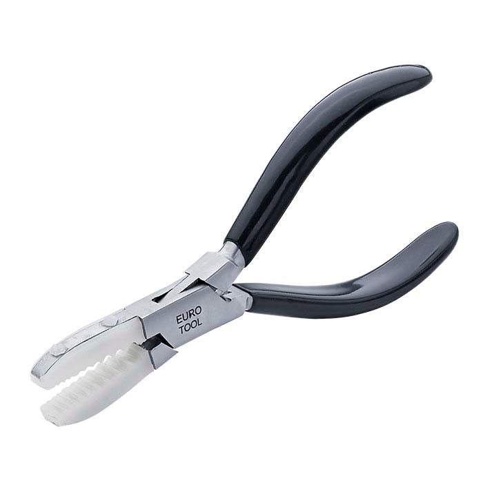 These specially designed pliers from Euro Tool are made for holding tubing safely and securely; the nylon jaws protect even the softest metals from scratches and marring during normal work processes. A row of five horizontal channels along the jaw accommodate tubing from 1.5 to 7.5mm in diameter (the channel sizes are 1.5, 2.5, 3.5, 5.5 and 8mm). • These pliers have a box joint; one half of the joint surrounds the other half, and the pivot is contained within. This joint holds its alignment far longer than a lap joint but allows the tool to open only as far as the box size. • The plastic-dipped handles remain comfortable, even over extended use.