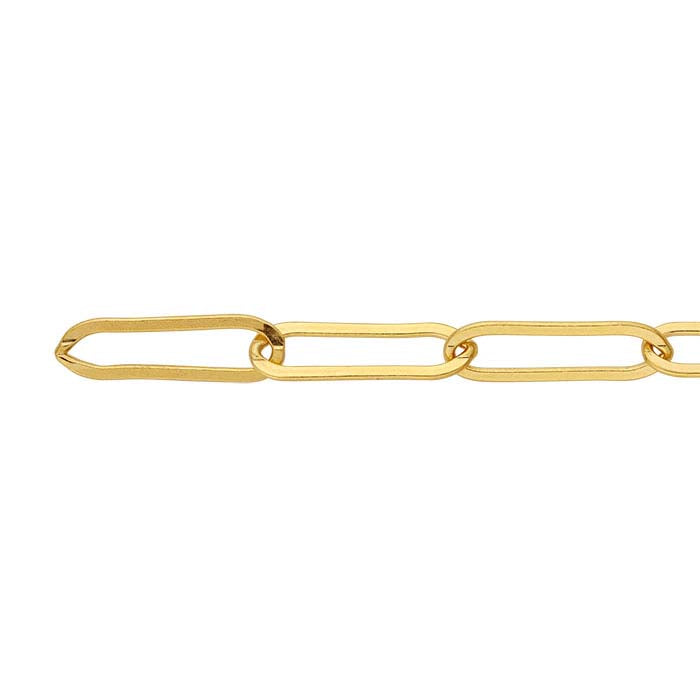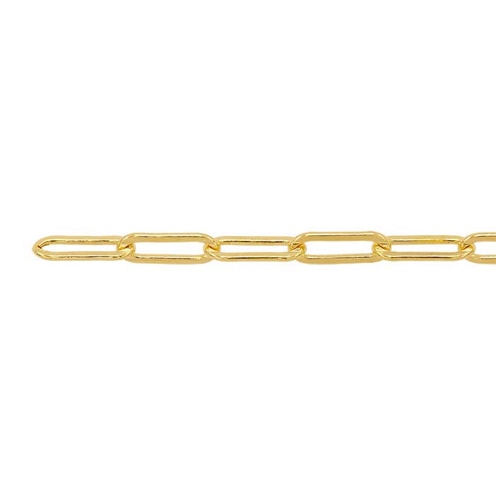 The long links on this 14/20 yellow gold-filled cable chain give it a streamlined look. Offer the chain as is, or use it as a foundation for your custom designs. The chain is plated with 14-karat yellow gold to ensure a uniform color.The most common chain style, cable chains are formed by simply connecting single links perpendicularly end to end. Links may be round, oval or other shapes—this chain has oval links.This chain is sold by the foot, allowing you to have exactly the length you need when you need it.