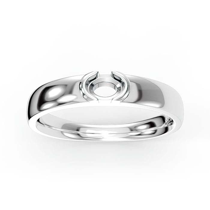 This 14-karat white gold ring mounting offers a solitaire design and holds one 5 x 4mm oval faceted gemstone in a partial bezel setting. Cut a seat into the top of the mounting to hold the girdle of your stone, then burnish the partial bezel walls over the stone, securing it in place.