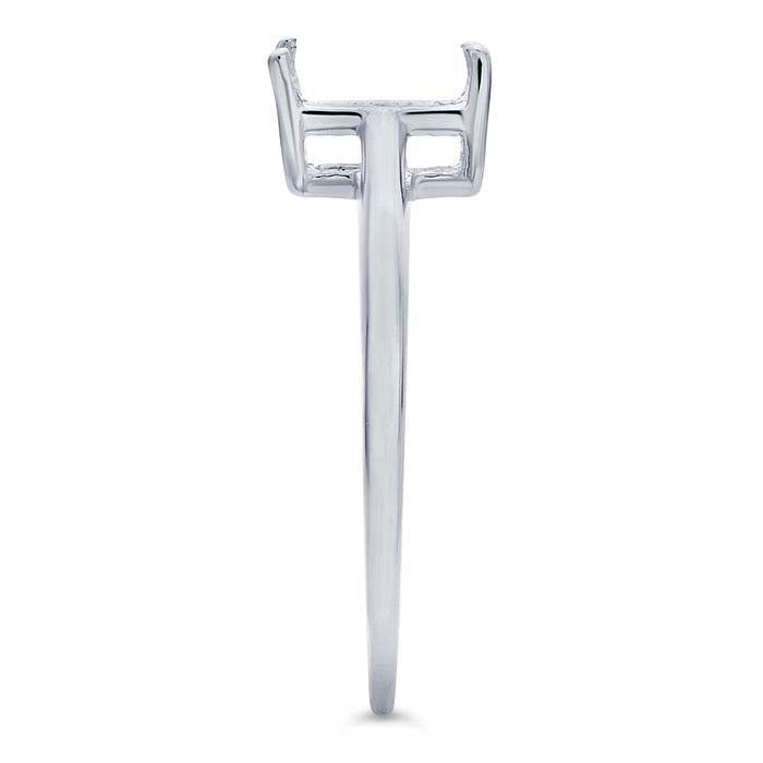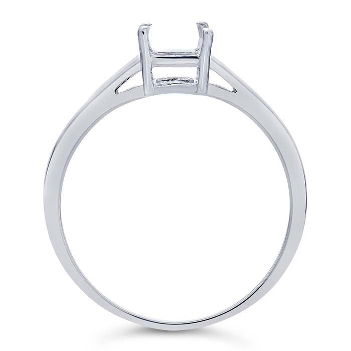 Questo anello in oro bianco 14 carati presenta una montatura a cesto con quattro griffe pre-intagliate per una pietra taglio smeraldo e un gambo liscio con finitura lucida; il gambo ha una superficie esterna arrotondata e una superficie interna piatta. Una scelta classica, la montatura a quattro griffe sostiene una pietra taglio smeraldo di 7 x 5 mm, supportando la gemma su quattro lati. Le montature a cesto hanno lati aperti progettati per permettere a più luce di raggiungere e attraversare la pietra, migliorandone la luminosità e la brillantezza. Le griffe pre-intagliate offrono un inizio professionale per l'incastonatura con sedili per pietre perfettamente livellati già tagliati in ogni griffe.