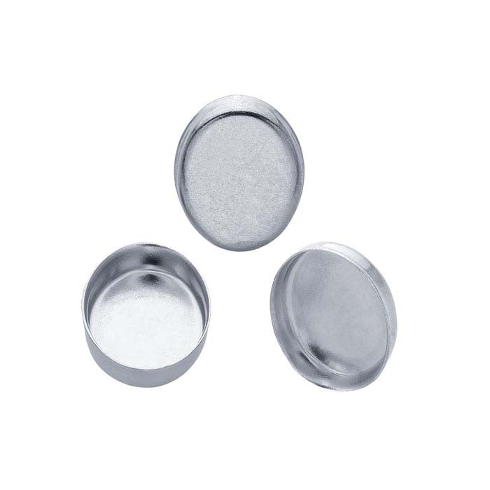 Questa coppa a castone in oro bianco 14 carati è facile da usare e offre una finitura dall'aspetto professionale. Contiene una pietra cabochon o con base piatta ovale da 9 x 7 mm. Potrebbe essere necessario regolare l'altezza della parete per adattarla alla pietra; limare o levigare il bordo superiore della parete secondo necessità.