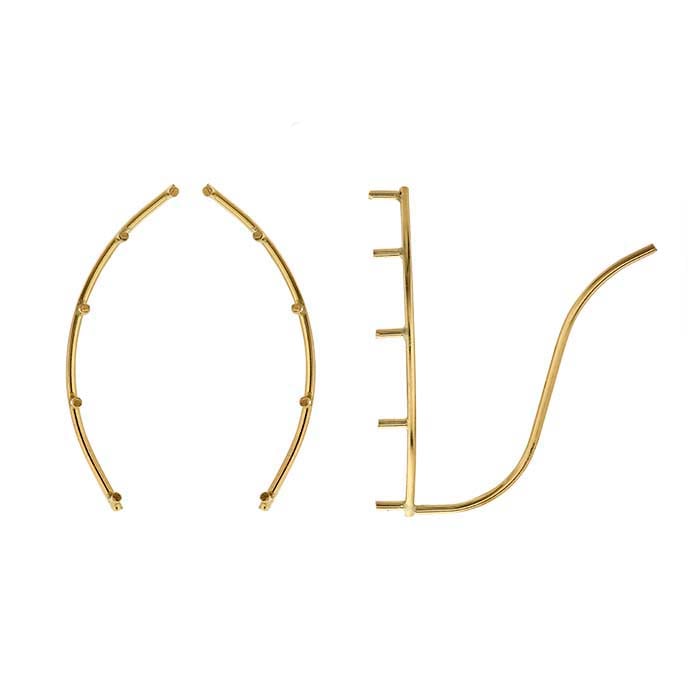 This lightweight, 14-karat yellow gold ear-climber earring features five pearl peg mountings. Set a half-drilled pearl or bead on each peg, and secure it in place with jeweler's epoxy. Ear wire climbers allow customers to wear the earring so the design appears to climb up the curve of the ear, or wear it with the design curving downward if desired, like a regular ear wire—giving customers two looks in one. Sold as a right and left facing pair.