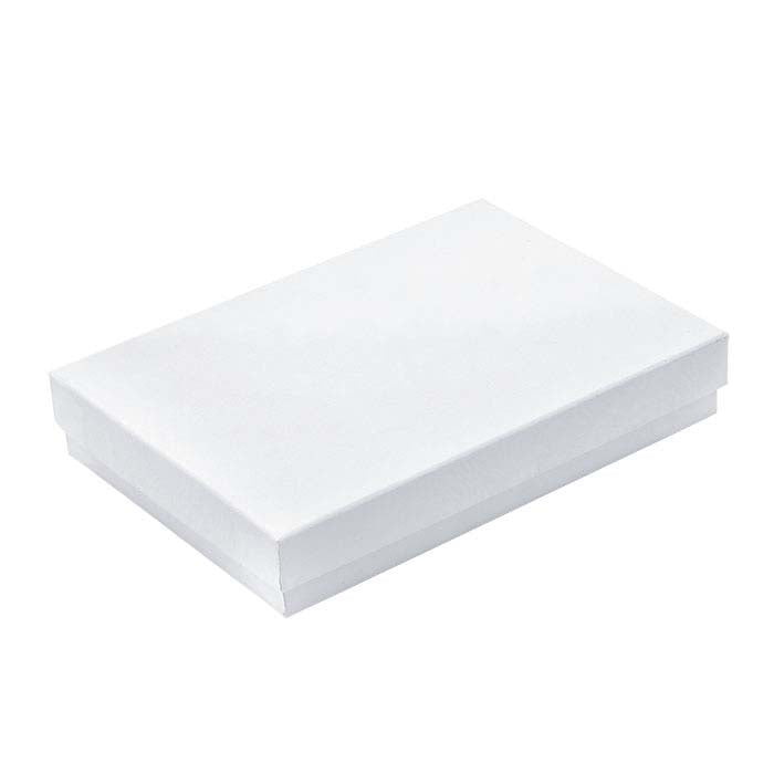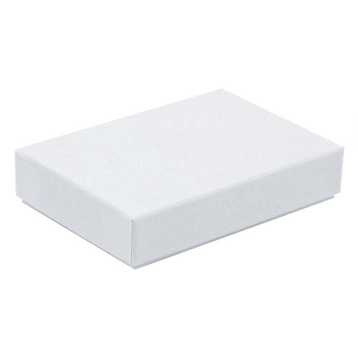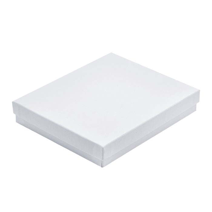 Offer your customers eco-friendly packaging they’ll feel good about. This universal box with lid is made from 90% post-consumer fiber, covered with paper made from 100% post-consumer fiber.Customize it with hot stamping to keep your brand top of mind. Combine classic white swirl with other solid-color boxes, or with colorful paper and ribbon.The box includes ½”-thick white poly-fill wadding that will not cause tarnish.