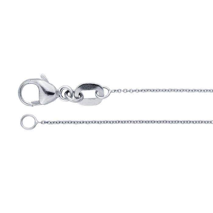 This delicate platinum cable chain features a classic profile and is an ideal foundation for small pendants and drops. The most common chain style, cable chains are formed by simply connecting single links perpendicularly end to end. Links may be round, oval or other shapes—the links of this chain are round. Buy this chain by the inch to create your own custom of necklace or to use short lengths to connect larger elements in your design.