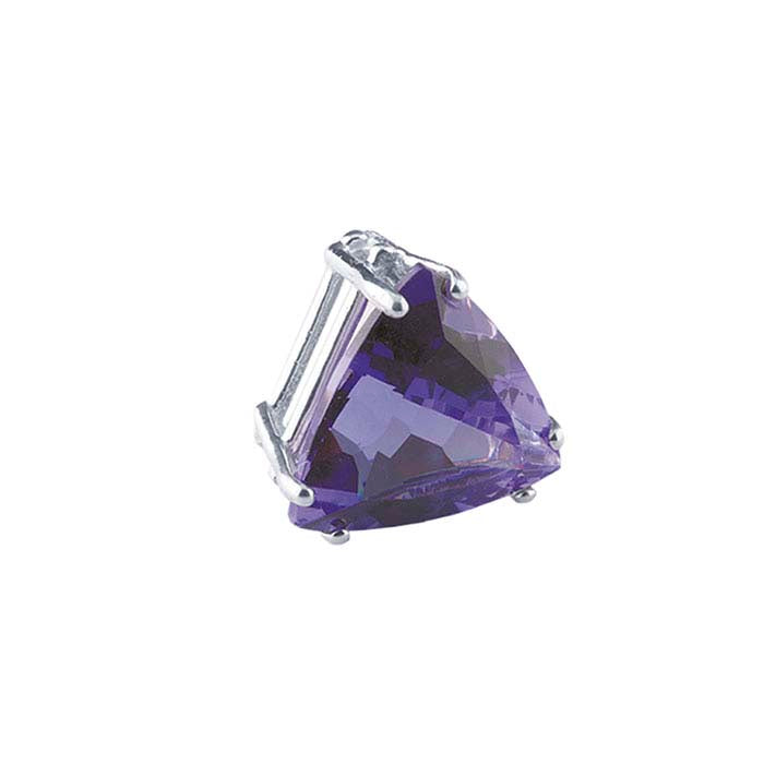 Questa montatura ReadySet™ in argento sterling a cestello ospita una pietra preziosa sfaccettata triangolare da 10mm; la misura è presa da punta a punta. Le montature a cestello presentano lati aperti progettati per permettere a più luce di raggiungere e attraversare la pietra, migliorandone la luminosità e la brillantezza. Presenta tre serie di doppie griffe ad ogni angolo, per un totale di sei griffe che garantiscono una presa sicura. La montatura a 6 griffe offre una sicurezza extra per pietre preziose di grandi dimensioni o di alto valore.