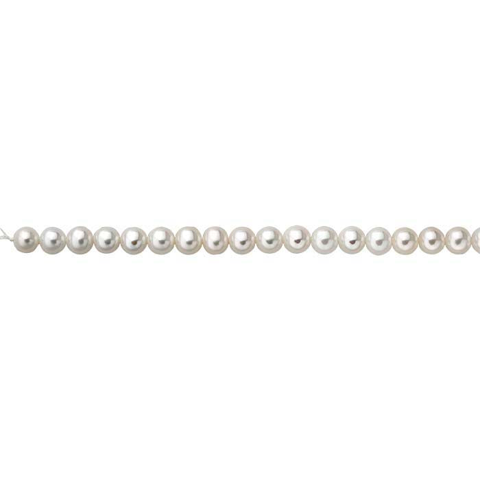 The A-grade white freshwater cultured semi-round pearls on this strand feature a smooth finish and nearly blemish-free luster. Perfect for high-end jewelry designs made with silver, palladium or gold findings, this pearl is a great choice for earrings, bracelets and pendants, either on its own or combined with other colors of pearls and gemstones.