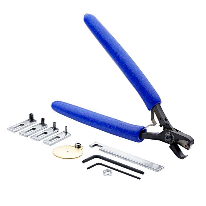 This kit (NR1132) from Swanstrom includes everything you need to create wire components with consistent, perfect loops. The small wire-looping pliers are ideal for making head pins or ear wires from wire up to 18 gauge. The anti-glare finish prevents eye strain caused by reflective glare and increases visibility of the workpiece. This kit comes with four pins for making loops of different sizes and a spiral plate that is great for forming spiral components. • These pliers have an adjustable lap joint; the screw allows the joint to be adjusted as needed. • A jaw stop prevents over-extension of the tool and allows for even, repeatable pressure. • The double-leaf spring holds the pliers open and ready to use until they are squeezed closed and delivers a fast, strong rebound for improved productivity. • The Soft-Touch™ sure-grip foam handles are longer, wider and ergonomically designed for maximum comfort over extended periods of use. All Swanstrom tool handles are latex free.