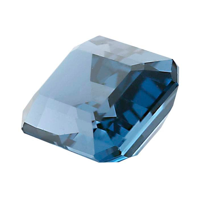 The saturated blue color, clarity and durability of this AA-grade emerald-cut London-blue topaz makes it a perfect choice for elegant custom jewelry designs of all types. One of the most popular topaz gemstones, London-blue topaz is a medium-to-deep grayish blue, sometimes with a green tinge—hues of the ocean depths. The gemstone is naturally flawless in most cases. Topaz is one of the birthstones for November.A hard, usually transparent aluminum silicate gem material, faceted topaz has a brilliance that rivals more expensive gemstones, making it an economical alternative to more costly gems. An "8" on the Mohs scale, topaz is tough and durable, ideal for all types of jewelry. Topaz forms in an orthorhombic structure with crystals that are usually prismatic. Pure topaz is colorless; impurities give the gemstone color. Gemstones can appear in a range of colors, with natural pink being the rarest. Most topaz colors are heat-treated or irradiated to enhance their color. In folklore, this gemstone is believed to dispel sadness and fear, to ward off poisons and to reverse infertility.The emerald-cut has a rectangle shape and cut corners. Its facets are concentric planes that resemble stair-steps around the circumference of the gemstone, above and below the girdle.