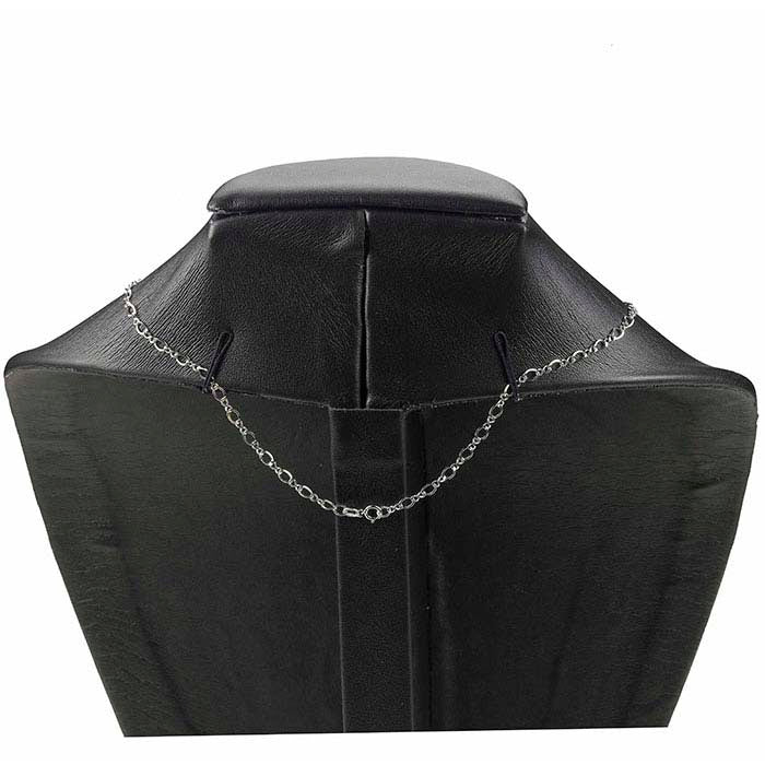 이 목걸이 흉상은 하나 이상의 펜던트나 목걸이를 걸 수 있습니다; "Steel" Vienna™ 인조 가죽 표면의 짙은 차콜 그레이와 약간의 금속성 광택은 백색 및 황색 금속을 아름답게 돋보이게 하며 전통적인 검정색에 대한 우아한 대안을 제공합니다. 이 흉상의 윤곽은 목걸이와 펜던트가 착용 시 자연스럽게 늘어지는 모습을 보여주며; 키가 큰 흉상은 수직 쇼케이스나 카운터 위에서 가장 잘 보입니다. 뒷면의 와이어 탭은 어떤 길이의 목걸이도 흉상에 단단히 고정하여 안전함과 우아한 전시를 보장합니다. 인조 가죽은 나무와 골판지로 보강된 형태를 덮고 있습니다.