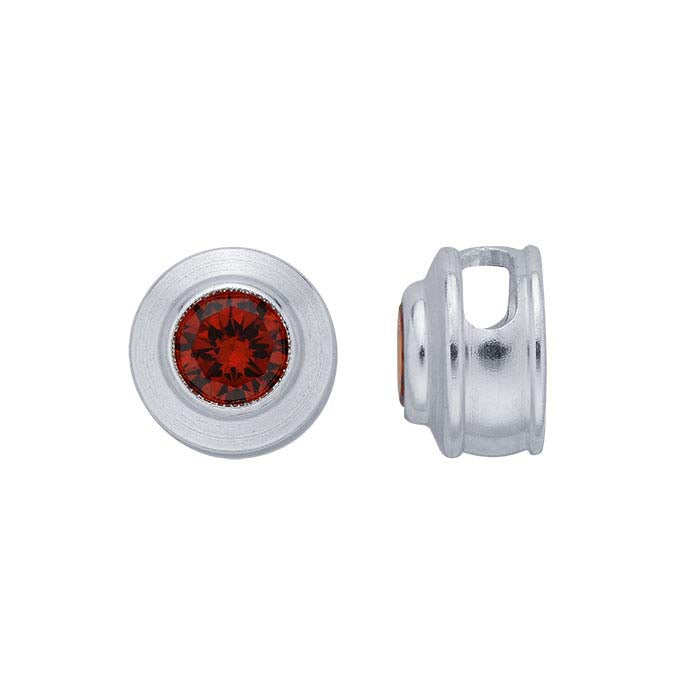 이 스털링 실버 참은 4mm 크기의 둥글고 밝은 빨간색 다각형 크리스탈 하나가 세팅되어 있습니다; 루비는 7월의 탄생석입니다. 이 참은 체인이나 코드에 쉽게 추가할 수 있도록 두 개의 구멍이 있습니다.