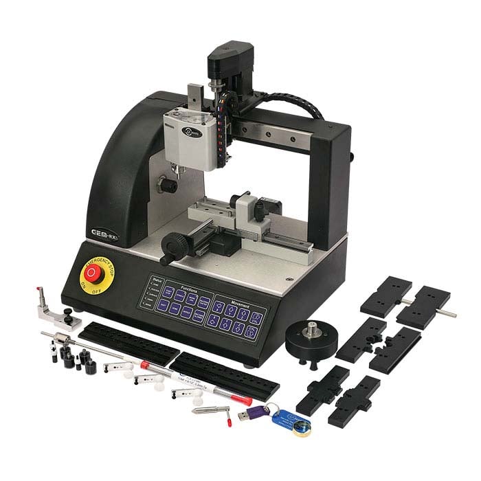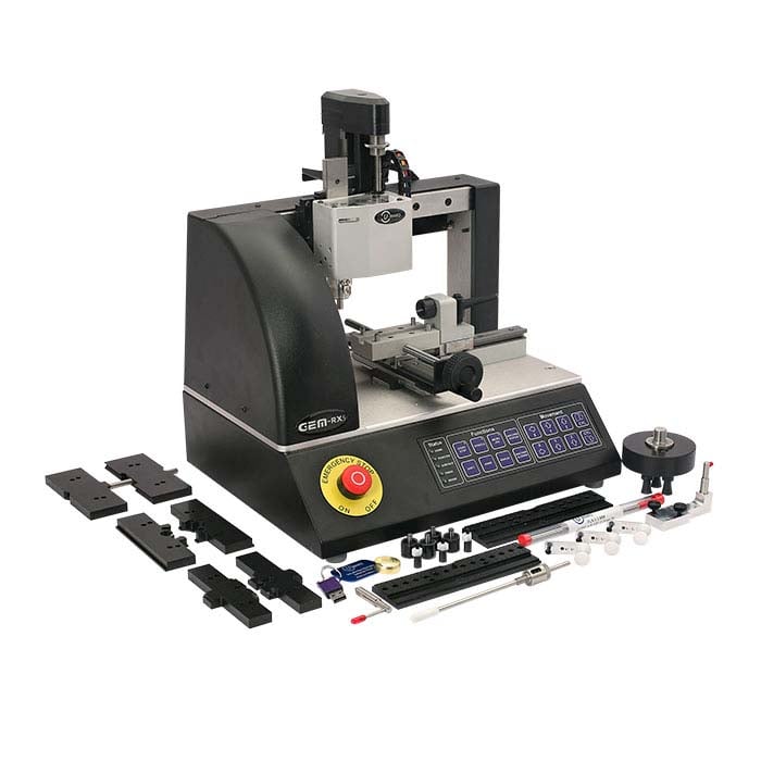 금속, 플라스틱, 목재, 유리 등 평면 및 원통형 표면 모두에서 정밀한 결과를 경제적으로 달성할 수 있는 조각기가 필요하신가요? 다재다능한 U-MARQ® GEM-RX5는 빠르고 사용이 간편하며 평면 아이템, 반지나 팔찌의 내외부 표면, 원형 조각의 360° 전면에 걸쳐 정확한 조각 결과를 합리적인 가격에 제공합니다! 이 기계는 컴퓨터와 함께 사용해야 하며 최대 6" x 3" 크기의 평면 영역과 최대 70mm 크기의 원통형 영역에 조각할 수 있습니다. 4축 조각기는 소매 환경에 이상적이며, 작업 중 섬세한 보석을 고정할 수 있는 자동 중심 바이스와 지그, 코팅된 금속에 버니싱할 수 있는 고속 스핀들 모터가 함께 제공됩니다. 개인용 컴퓨터나 노트북에 연결하여 고객에게 맞춤 서비스를 제공하고 비즈니스를 성장시키세요!