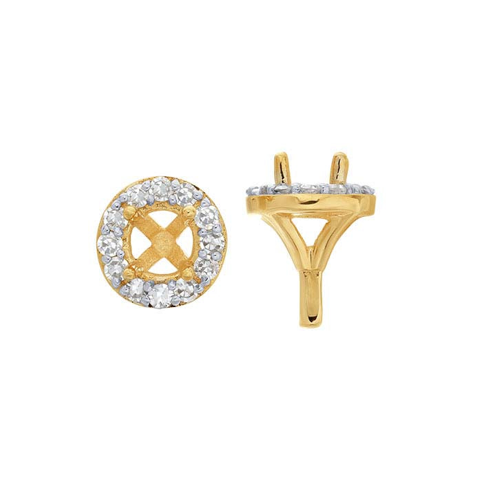 14K Geltono Aukso 3 mm Apvalus Pusiau Montuojamas Halo 4-Kablių Laikiklis su Kaiščiu