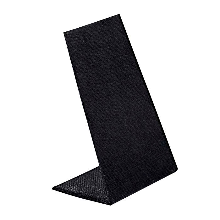 Šis tvirtas juodos spalvos lininis stendas yra greitas, paprastas ir patrauklus būdas pristatyti vieną pakabutį arba auskarų porą; stendo paviršius šiek tiek siaurėja, suteikdamas jam rafinuotą išvaizdą, o jis yra šiek tiek pasviręs optimaliai apžvalgai. Viršuje esantys įpjovimai pritaikyti tiek smeigtukiniams, tiek vieliniams auskarams arba pakabuko grandinėlei. Audinys tamsios spalvos su matoma pynimo tekstūra; subtili tekstūra padeda papuošalams neslysti iš vietos. Stendai puikiai tinka vertikaliems auskarų eksponavimams; papildomas aukštis atkreipia dėmesį į pasirinktus gaminius ir suteikia tekstūros sudėtingesnėms ekspozicijoms. Šį mažą individualų stendą galite pastatyti bet kur didesnėje ekspozicijoje, greitai perkelti į naują vietą arba lengvai išimti iš vitrinos kliento apžiūrai. Dažytas juodas linas dengia metalinę formą.