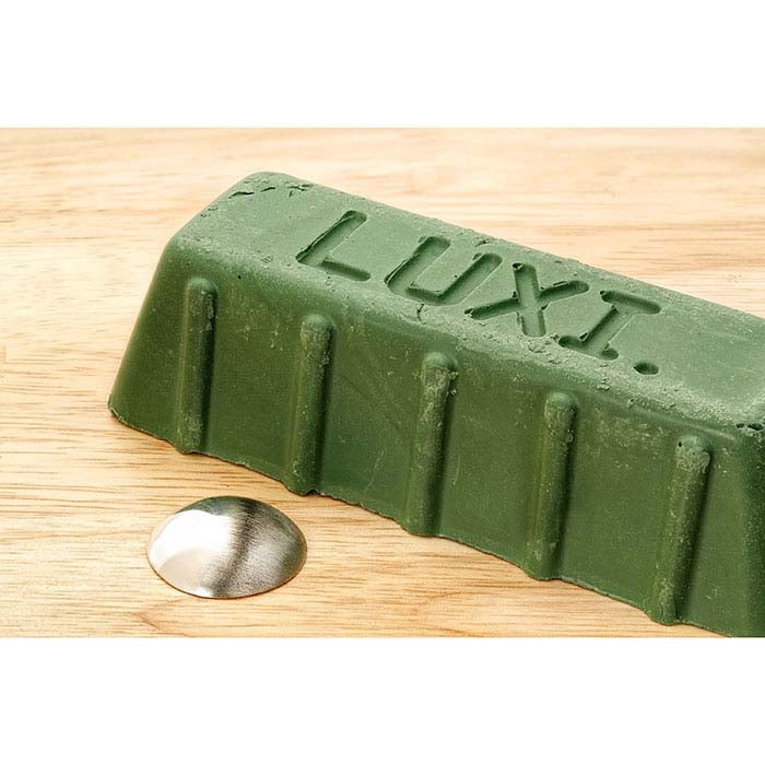 LUXI green is a silica-free polishing compound, composed of an alumina oxide abrasive in a water-soluble binder. Because it is silica-free and contains no hazardous material, this compound is safer to use. In addition, its special structure and composition (vegetable fat-based) allow you to use less; the compound stays in place on your buff, minimizes metal loss in process, and is easy to clean up—all while producing an amazing finish. Use this low-temperature green compound when you need to polish at lower rpms. It's perfect for polishing platinum and titanium at speeds under 1,000rpm without creating an 'orange peel' effect, and it's also a great choice for hand-polishing using a rotary tool with felt tips for intricate surfaces. For best results, use with a muslin buff for scratch removal (compares to 240 grit sandpaper) or with a loose-fold flannel buff for a high-luster finish. Each package contains one bar of compound.