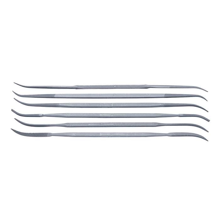 This set of Friedrich Dick riffler files includes a variety of double-ended shapes and profiles, maximizing the available cutting area of the files; the set ensures you have the file shape you need for all of your jewelry designs. Use these files to form and shape edges and contours and refine hard-to-reach areas and contoured surfaces. This set includes one of each shape: style #18, flat; style #1, round; style #34, half-round; style #3, oval; style #22, three-square; and style #19, square.