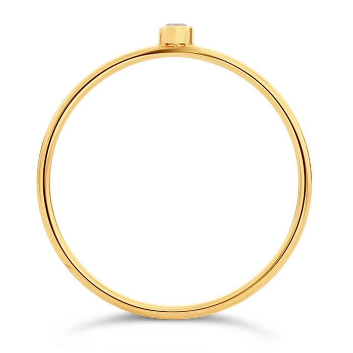 This 14/20 yellow gold-filled ring features one 2mm round pink CZ in a bezel setting. It’s attractive as a stand-alone accessory or stacked in combination with other rings. Offer customers a variety of stackable ring styles to mix and match, and encourage them to create their own changeable designs. This ring is plated with 14-karat yellow gold to ensure a uniform color.