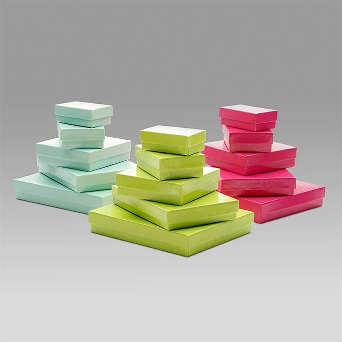 Ten papierowy, dwuczęściowy uniwersalny pudełko mieści różne style biżuterii. Użyj zestawu pudełek w tym samym kolorze lub łącz i dopasowuj z uzupełniającymi się pudełkami pokrytymi papierem w jednolitym kolorze lub wzorzystym, aby stworzyć wygląd odpowiadający Twojej marce i/lub potrzebom sezonowym czy okazjonalnym. Dodaj dekoracyjną wstążkę, opakowanie na prezent lub kokardę (dostępne osobno), aby spersonalizować każde pudełko. Pudło wykonane jest z tektury w 100% z recyklingu (z 90% włókien pochodzących od konsumentów i 10% włókien przedkonsumenckich), pokryte błyszczącym papierem w kolorze fuksji; zawiera 1/2-calową warstwę białego wypełnienia poliestrowego, które nie powoduje matowienia.