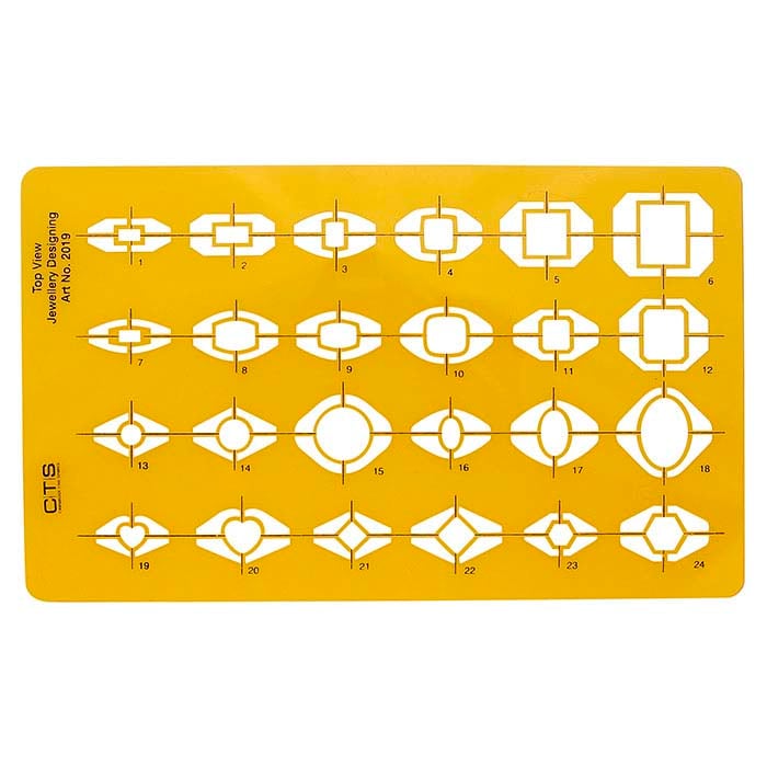 Ten szablon zawiera kształty obrączek widziane z góry w 24 stylach, idealne do projektowania szerokiej gamy pierścionków.