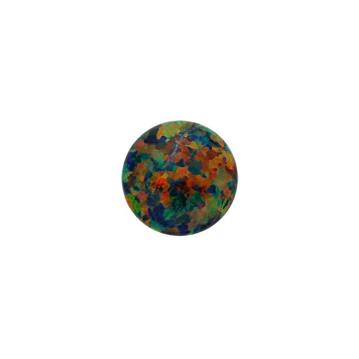 This simulated black opal cabochon features an attractive color and is ideal for a variety of designs. Created in a lab and stabilized with plastic, this gemstone should not be exposed to direct heat sources. Opal is one of the birthstones for October.Simulated opal is an economical alternative to natural opal, offering a durability that makes it easier to work with and expanding your creative options. It's ideal for jewelry designs that are subject to wear and tear, such as bracelets and rings.