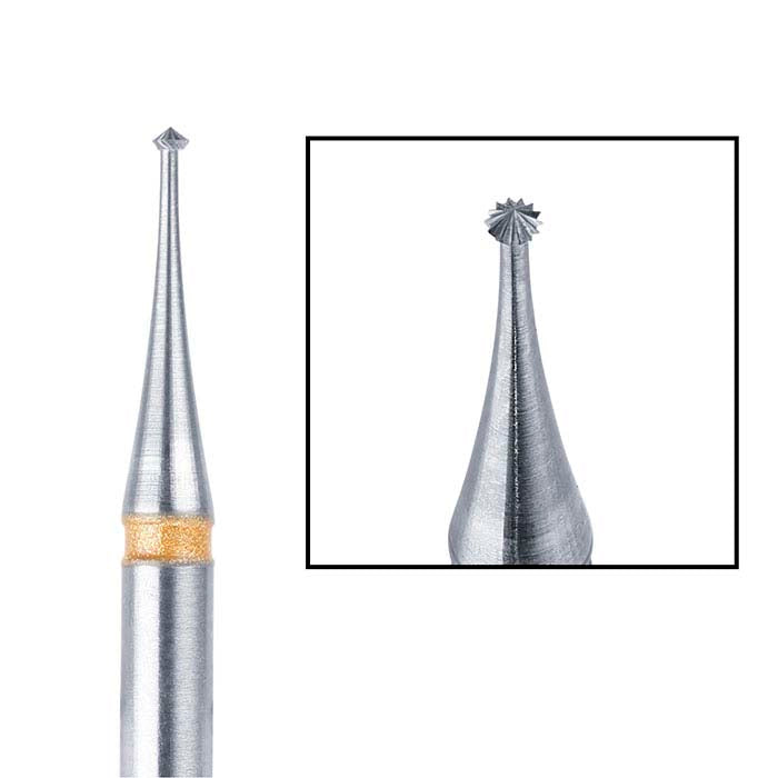 This Busch® 90° bearing cutter (hart) bur is used for cutting stone seats and for notching prongs. Made from long-lasting carbide, this bur will maintain its sharp edges longer and is ideal for use at high speed.