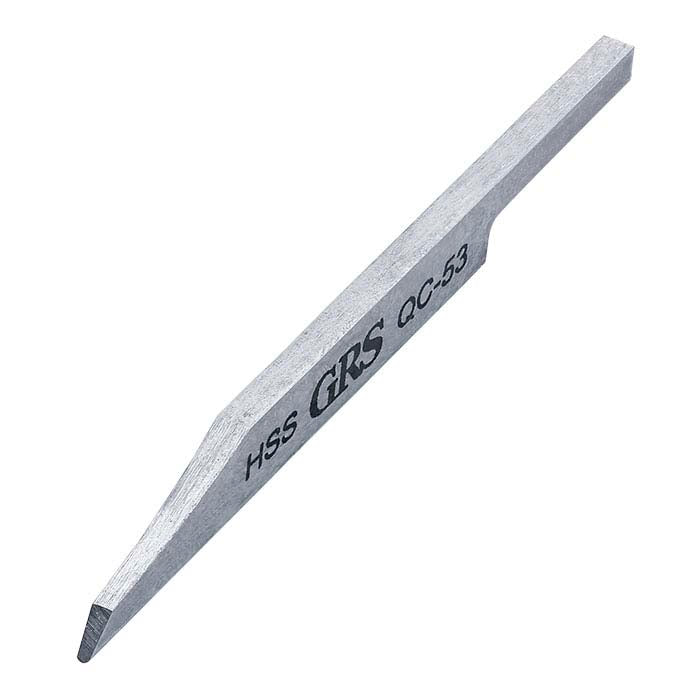 This shortened QC-50 (0.2mm, 0.008”) round graver from GRS® is ideal for use with quick-change holders and other handpieces. It has tapered sides and a rounded cutting edge. The graver is commonly used for bead raising, block lettering, line engraving, and engraving uneven surfaces. Use with 1/8” QC tool holder. Made of high-speed chrome steel, GRS® quick-change gravers are durable and hold a sharp cutting edge; they are easy to reshape and resharpen.