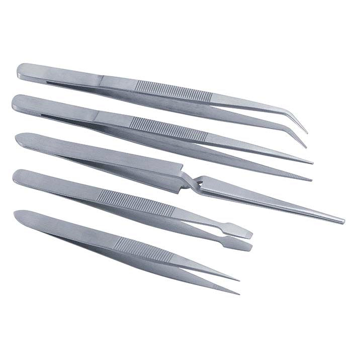 Stainless Steel Utility Tweezers, Set of 5