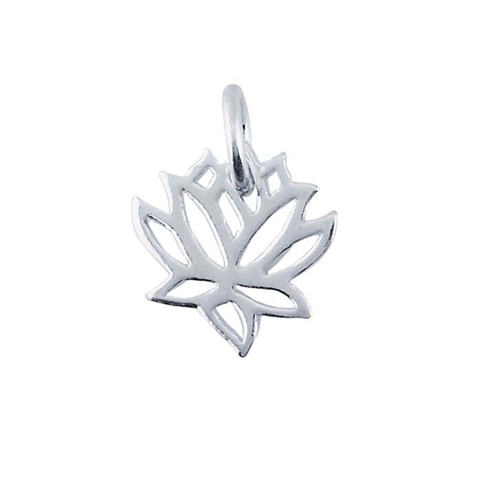 This sterling silver charm features an open lotus blossom design with a bright finish; the openwork styling ensures it is lightweight and makes the charm an ideal choice for an earring drop. Use it as a pendant on a cord or chain, or pair it with other charm styles in more complex, mixed-material bracelet and necklace designs. A jump ring (0.130" ID) is included.