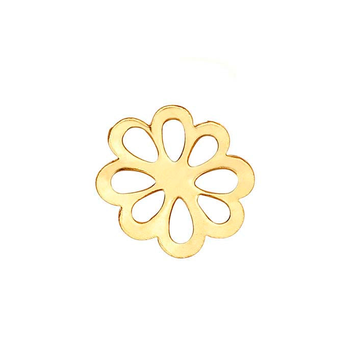 This 14/20 yellow gold-filled double-clad component features a flower with open styling. Without a ring, the component is ideal for use as a ringless charm that can be used with any of our floating glass lockets. Alternatively create a design in deep bezel components or findings that are intended for use with clear resin, or solder a bail or ring onto the component to create a charm or drop.