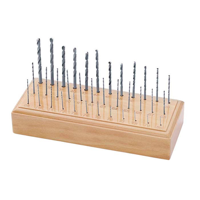 This set of large high-speed steel drills comes in a wood base. Shank size matches drill size. This set has 36 large high-speed twist drills, one of each size. The set includes:• #33• #36• #38• #40• #42• #44• #46• #48• #50• #52• #54• #56• #57• #58• #59• #60• #61• #62• #63• #64• #65• #66• #67• #68• #69• #70• #71• #72• #73• #74• #75• #76• #77• #78• #79• #80